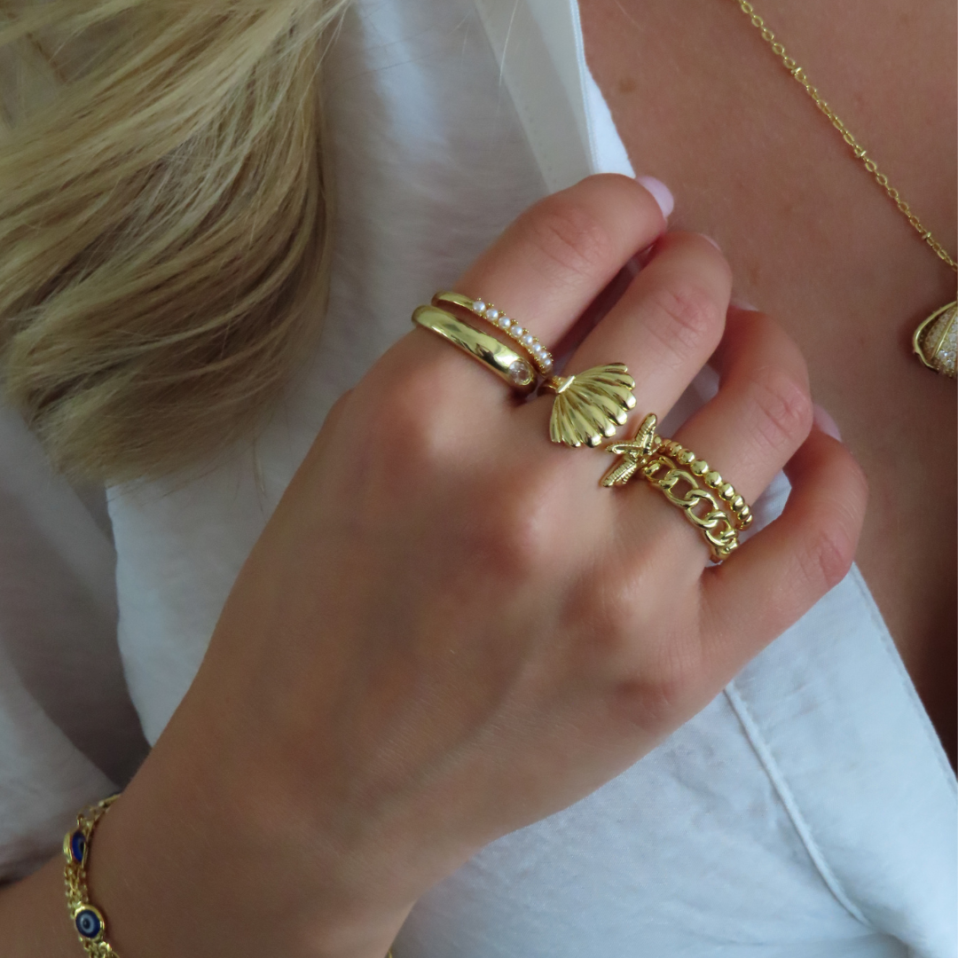 Dive into cuteness with our Under The Sea Ring. This adorable ring features a delicate shell and starfish design, perfect for adding a touch of whimsy to any outfit. Show off your love for the ocean with this charming accessory.